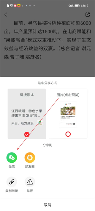 4、選擇分享到微信,也可復制鏈接手動分享,分享完成后可返回資訊列表,繼續瀏覽其他相關內容。