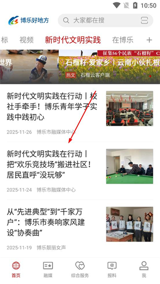 1、打開博樂好地方app在新時代文明實踐板塊,找到對應活動資訊標題,點擊該資訊條目,進入詳情頁面查看活動相關內容。
