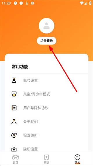 2、我的界面,可點擊登錄,登錄后能使用賬號設置、兒童、青少年模式等常用功能,還可查看用戶與隱私協議、關于我們等信息。