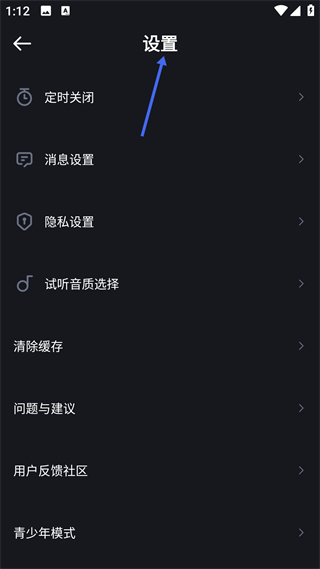 2、設置頁包含定時關閉、音質選擇等功能選項,可管理應用配置,是調整應用參數的功能集中界面。
