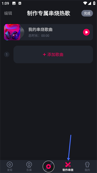 4、制作串燒頁支持添加歌曲組建專屬串燒,可查看串燒時長并播放,是個性化音樂串燒的創作界面。