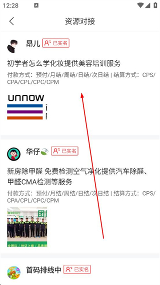 3、在資源對接列表中選擇初學者怎么學化妝提供美容培訓服務,點擊進入該服務的詳情頁面。