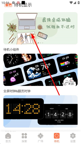 4、進入待機頁面,可見最佳穿搭體驗的展示內容,還有待機小組件及全屏時鐘等板塊,可選擇對應的待機相關組件來進行使用。