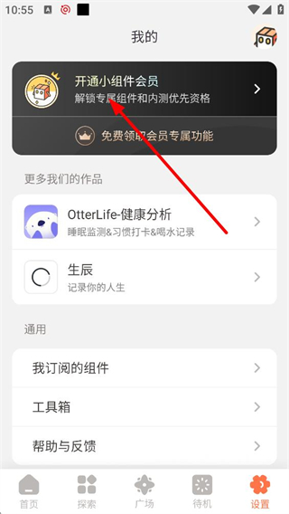 2、進入我的頁面,能看到開通小組件會員的入口,還設有更多作品板塊及通用類功能選項,可根據自身需求選擇對應的功能進行相關操作。