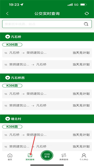 3、實時查詢界面可搜線路站點,展K306路在凡石橋等站點的運營計劃,助用戶掌握公交實時動態。