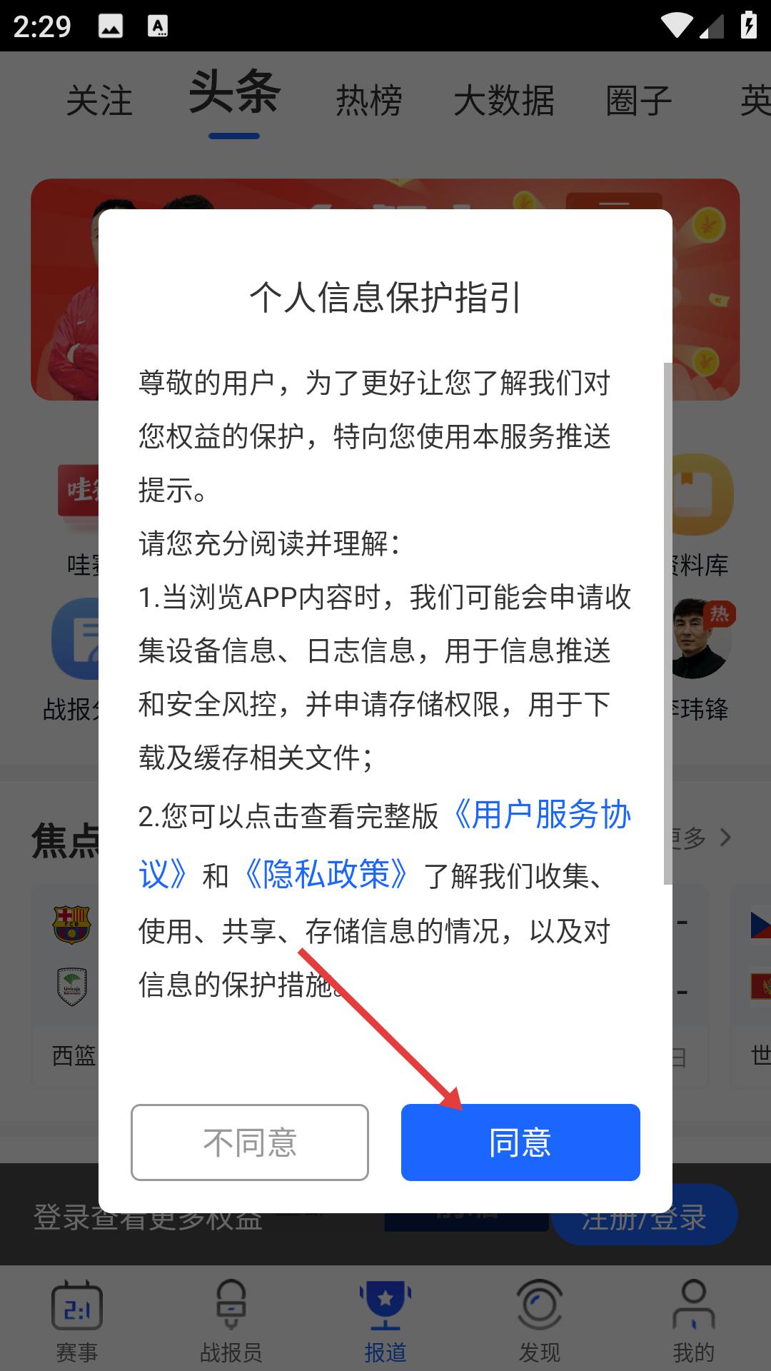 1、下載安裝完成后進入,需在用戶協議和隱私政策界面點擊同意,接受相關條款后才能進入應用。
