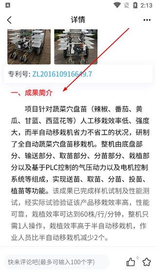 4、查看項目的專利號等信息,可在頁面下方的評論區留言互動,獲取更多關于該項目的相關內容。