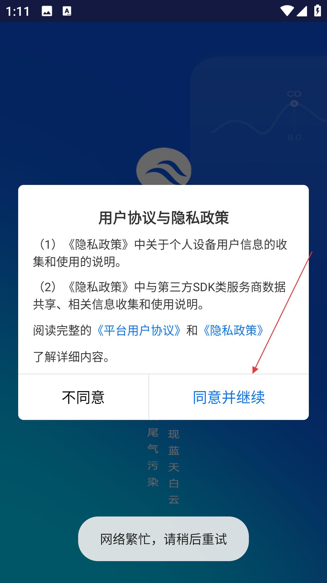 2、在協議頁點同意,進首頁,遇網絡繁忙重試,用中自收荒匠、智能診斷,查看課堂,管理訂單。