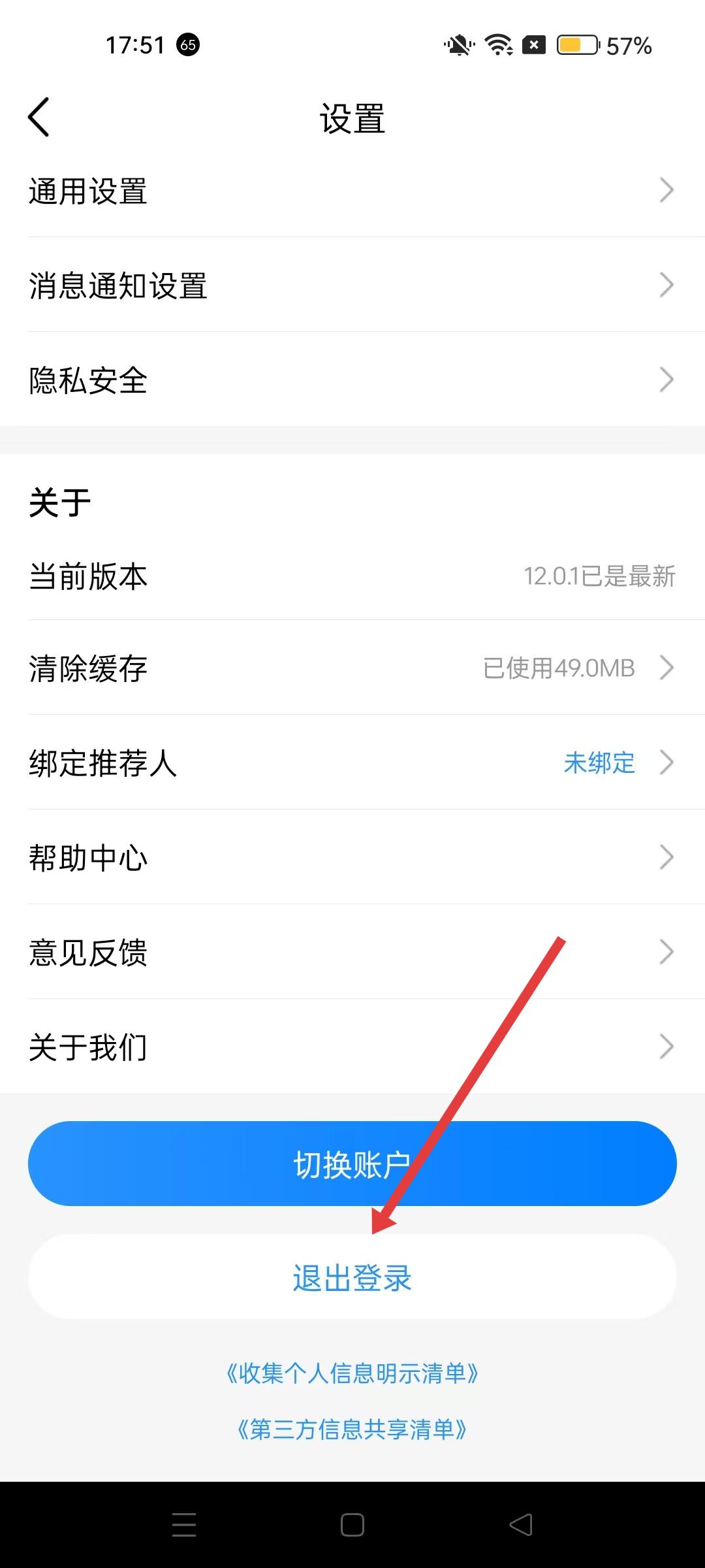 3、設置界面,找到底部的退出登錄按鈕,點擊該按鈕,觸發賬號退出的確認流程。