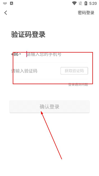 2、在驗證碼登錄頁輸入手機號,點擊獲取驗證碼并填寫,確認信息后點擊確認登錄按鈕完成賬號登錄。