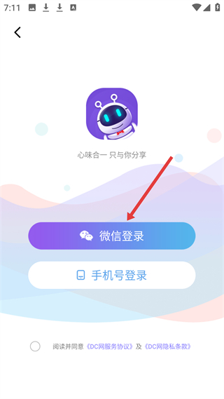 1、登錄頁有微信、手機號兩種登錄方式,需同意服務協議和隱私條款,標語心味合一只與你分享。