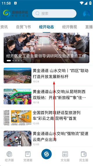 2、登錄成功后進入平臺首頁選擇經開動態板塊,瀏覽展示的新聞列表,找到想瀏覽的新聞,點擊可進入新聞詳情頁面。