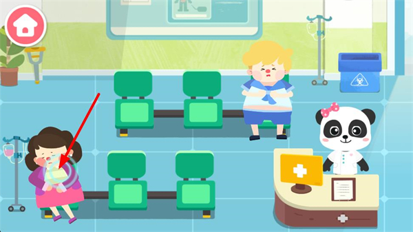 2、在診室場景,對就診的角色進行初步的醫護處理,按照提示操作對應區域,推進診療的進度。