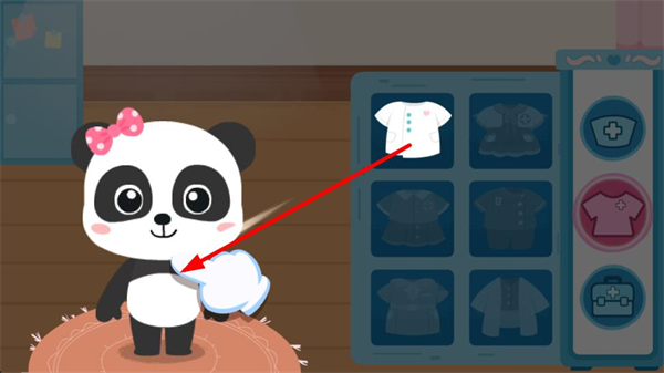 1、選擇對應的服裝,為熊貓裝扮成護士形象,完成角色的職業裝扮,開啟醫護相關的流程。