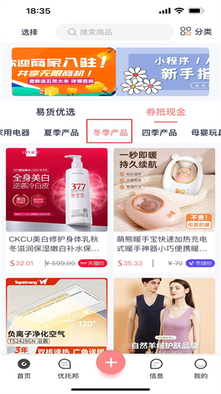 4、切換到冬季產品分類頁面,展示CKCU身體乳、萌熊暖手寶等冬季商品,可查看這些商品的價格及信息,了解冬季類物品的相關詳情。