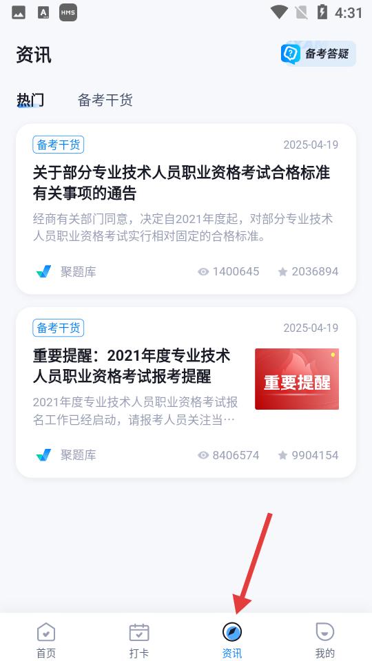 3、點擊資訊板塊分熱門、備考干貨等,展示考試合格標準通告等內容,為社會救助員考生提供實用備考資訊。