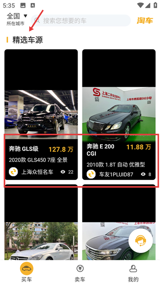 1、奔馳車源頁,展示GLS級、E200等車型,標注價格、年份配置及商家信息,便于用戶了解奔馳二手車的具體資源。