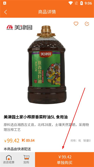 4、進入商品詳情頁查看商品介紹和規格,點擊單獨購買按鈕,即可進入該商品的購買流程,完成下單。