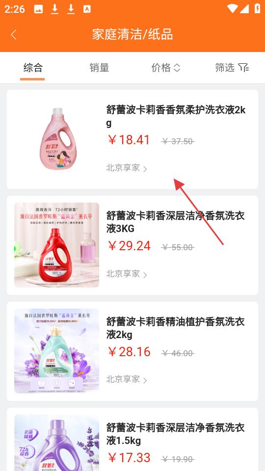 2、在分類商品列表,瀏覽商品如舒蕾洗衣液、弱堿黃小米等,挑選心儀商品,查看價格、規格等信息后,點擊商品進入詳情頁。