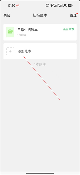 1、切換賬本頁面,查看當前的日常生活賬本,點擊添加賬本選項,進入新建賬本頁面,準備創建新的賬本用于記錄收支。