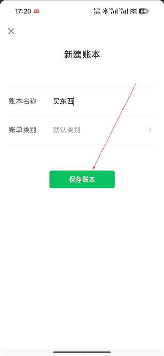 2、在新建賬本頁面,填寫賬本名稱比如買東西,選擇賬單類別為默認類別,確認信息后點擊保存賬本按鈕,完成新賬本的創建。