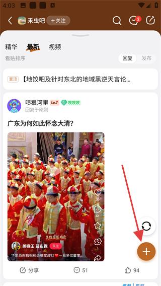 2、在貼吧頁面找到右下角的加號按鈕,點擊加號,進入帖子發布頁面。