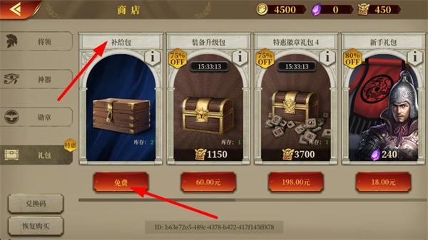 4、在商店可領取補給包等,如免費補給包,獲取資源提升軍團戰力,助力戰役進程。