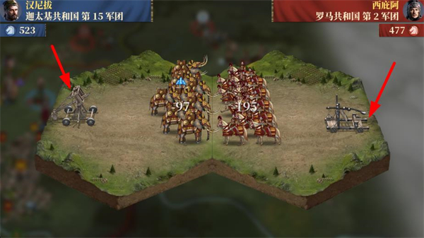 2、使用攻城器械,如漢尼拔軍團的攻城裝置,在與西庇阿軍團的戰斗里發揮作用,增強攻擊能力。