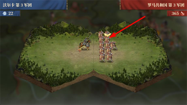 1、軍團間展開戰斗,如沃爾卡第3軍團與羅馬共和國第3軍團對戰,通過戰斗消耗敵方兵力,爭取戰役勝利。