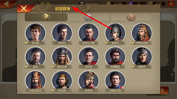 3、招募將領,如屋大維、安東尼等,擴充將領陣容,提升軍團指揮和戰斗能力。