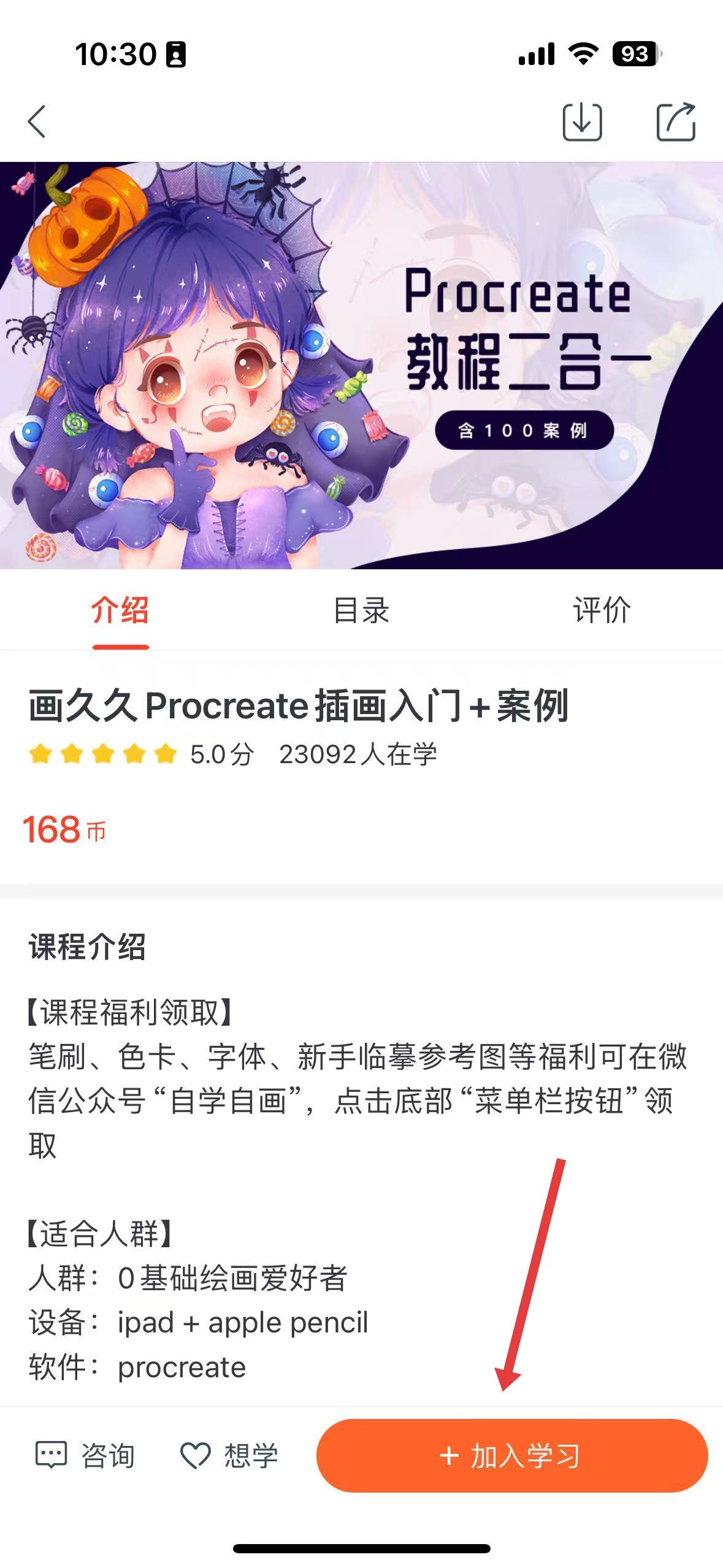 3、進入課程詳情頁,瀏覽課程介紹適合人群等信息,點擊加入學習,開始課程學習的旅程。