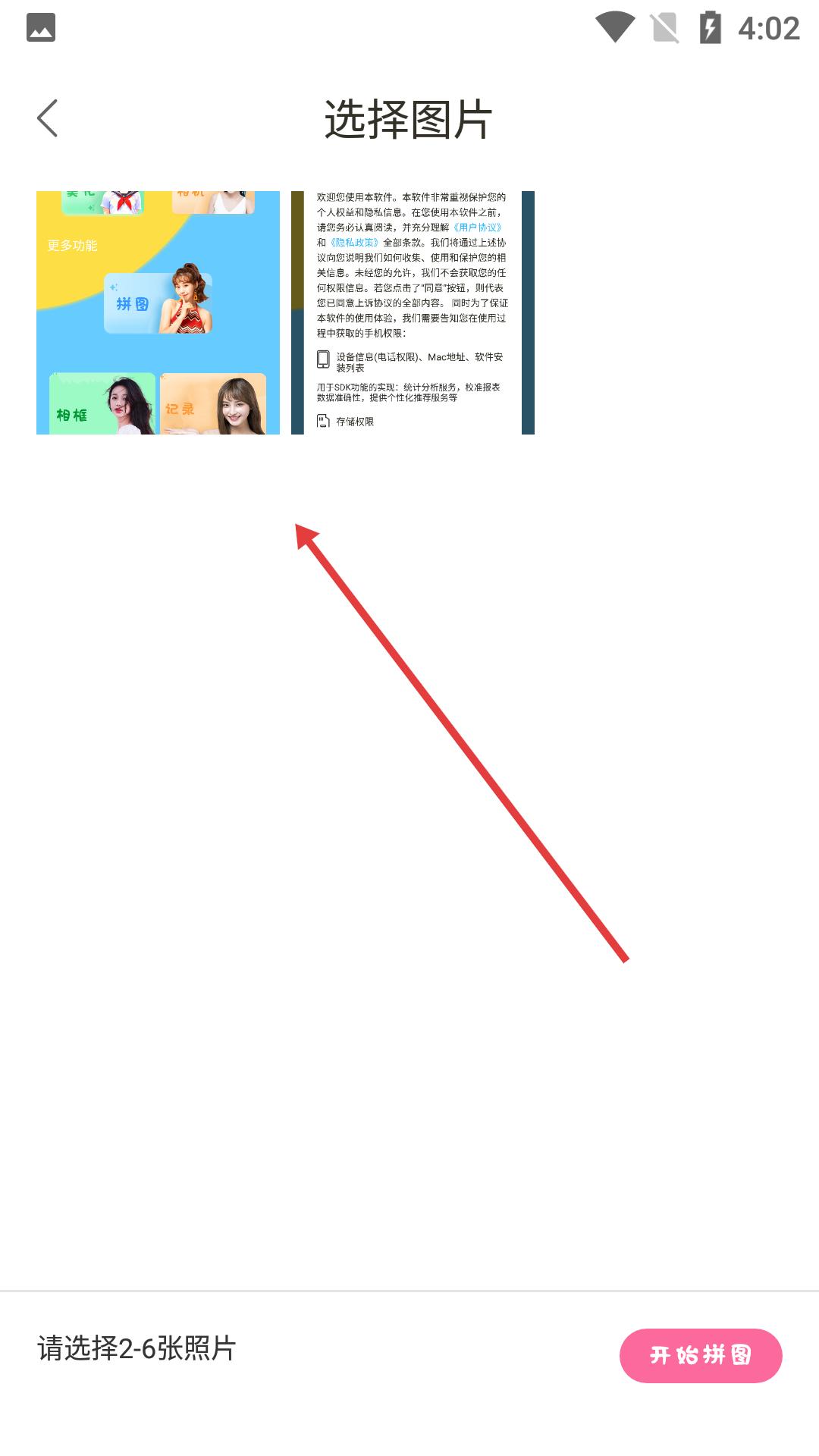 3、在圖片處理軟件的拼圖功能中選擇2至6張照片,點擊開始拼圖按鈕,即可生成拼圖圖片,完成圖片編輯操作。