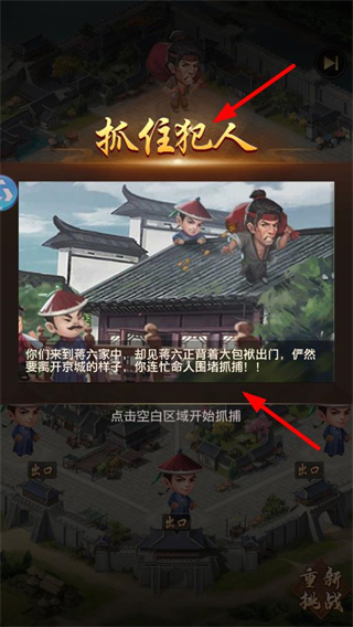 3、來到蔣六家里,發現蔣六背著包裹欲離開京城,觸發抓住犯人的環節,點擊空白區域即可開始對蔣六的圍堵抓捕。