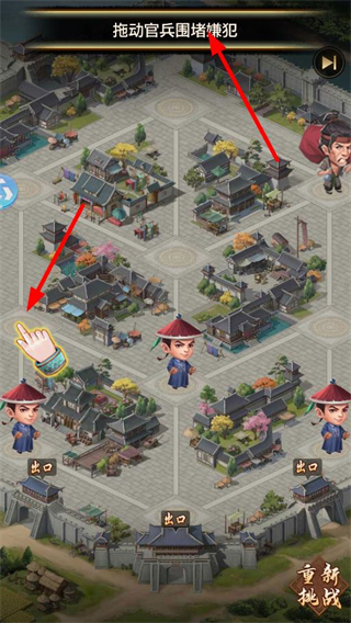 4、進入圍堵界面,按照提示拖動官兵,將其布置在合適位置,完成對嫌犯的圍堵,推進案件的后續審理進程。