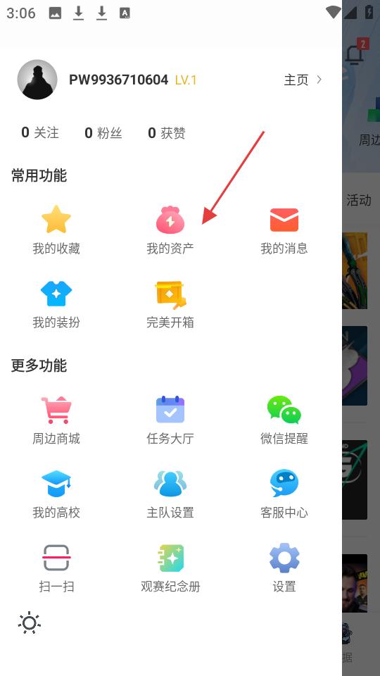 2、進入個人主頁,在常用功能區域找到我的資產選項并點擊,查看賬號資產相關信息,了解虛擬道具、積分等情況。
