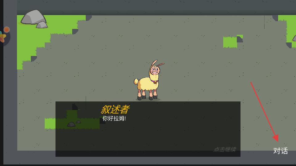 1、點擊開始按鈕進入游戲場景,此時會看到小羊角色,準備開始冒險覓食,探索場景中的可互動元素。