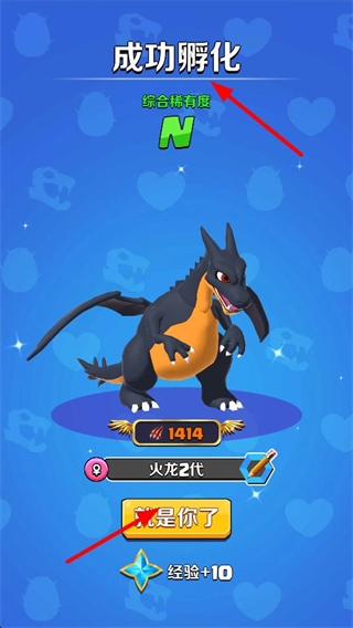 1、龍蛋成功孵化后,會出現對應的龍,點擊就是你了按鈕確認獲得該龍,同時獲取經驗,推進育龍進程。
