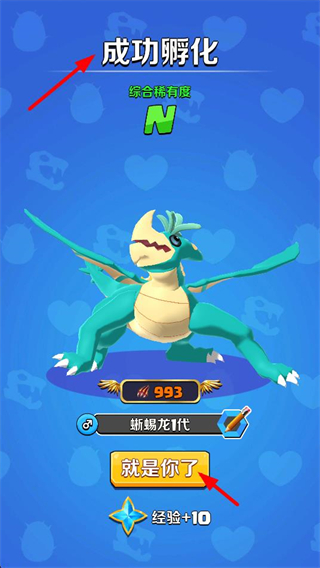 4、新的龍蛋孵化成功后,會獲得新的龍,點擊就是你了按鈕確認獲取,積累更多不同種類的龍,提升育龍收集度。