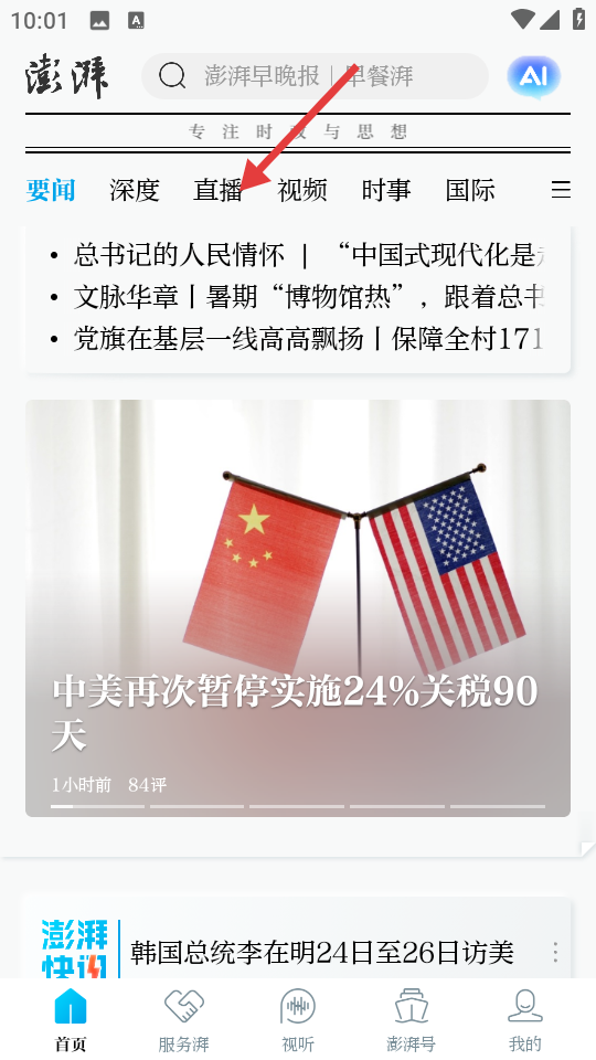 1、在APP首頁頂部導航欄找到直播選項,點擊它就能進入直播專屬板塊,這里匯聚各類直播內容,像新聞事件直播、體育賽事直播等,方便你快速找到想看的直播。