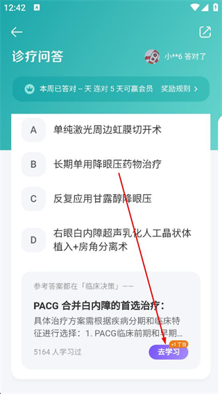 4、查看題目下方的參考資料提示,點擊去學習按鈕,進入對應的臨床決策內容頁面,深入學習相關診療知識。