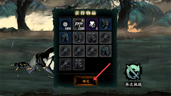 3、完成關卡后可獲得金幣、道具、裝備等物品,點擊確定按鈕領取獎勵,用于角色養成。