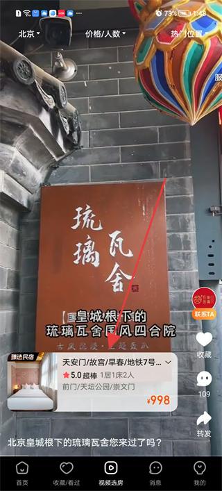 3、在民宿詳情頁面可查看民宿的實拍視頻、評分、距離等信息,還可了解琉璃瓦舍等特色民宿的介紹。
