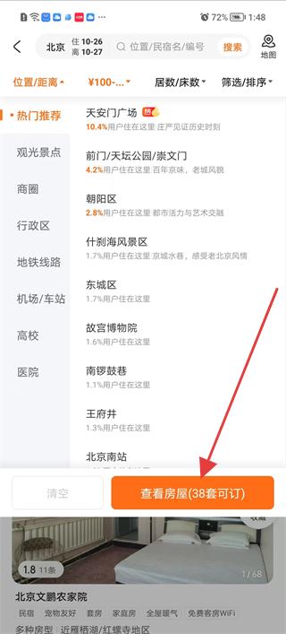 1、進入軟件房源查找頁面,選擇位置等篩選條件后,點擊查看房源,進入房源列表頁面。