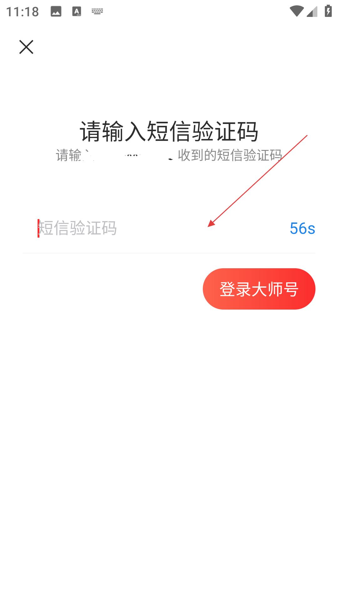 2、網易郵箱大師的短信驗證碼輸入界面,用戶需輸入收到的短信驗證碼登錄大師號,界面有倒計時顯示驗證碼有效期。