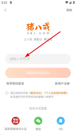 4、選擇手機號登錄,需輸入手機號、獲取短信驗證碼,勾選同意服務協議和個人信息保護政策后登錄,未注冊手機號將自動創建賬號,也可選擇賬號密碼登錄或新用戶注冊。