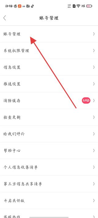 2、在賬號管理頁面點擊賬號管理選項,進入個人資料、賬戶安全、賬號注銷等功能頁面。