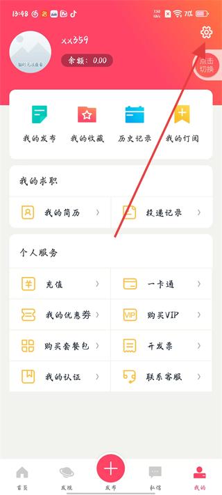 1、進入軟件我的頁面,可查看我的發布、我的收藏等功能入口,點擊右上角設置圖標,進入賬號管理頁面。