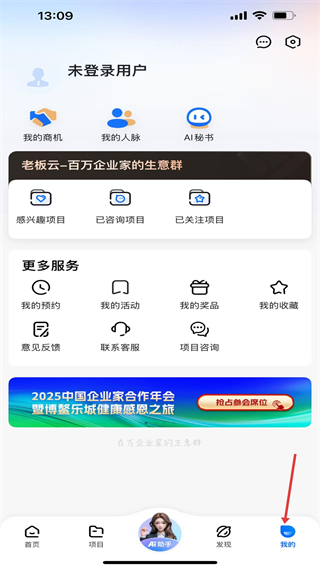 4、我的板塊,提供未登錄用戶入口,有我的商機等人脈服務,還有更多服務如我的預約,呈現用戶管理與企業服務功能內容。