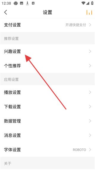 2、在設置頁面里找到興趣設置選項,點擊興趣設置,進入興趣設置的第一步。