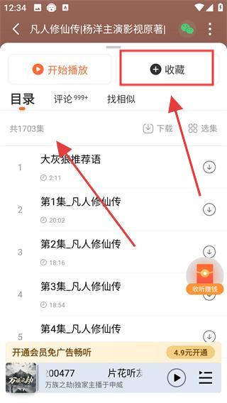 4、收藏成功后,若想收聽點擊開始播放,即可收聽內容,也可對作品進行下載、選集等操作。